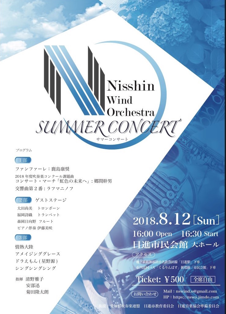 趣味は吹奏楽 名東ウインドオーケストラ、Nisshin Wind Orchestraに所属し、トランペットを担当
