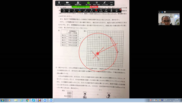 繋がった後は、早速、今日受験したばかりの全県模試の解説を。
