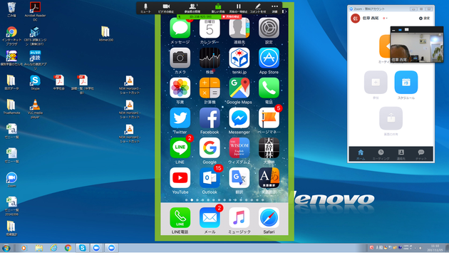 私の手元にあるiPhoneの画面がPCに表示され、さらにその画面を会議の相手へも表示させてることができます。