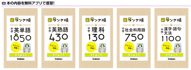例えば、この学研『ランク順 入試』 は、高校入試に使える英単語、英熟語、社会の単語、国語の漢字、四字熟語などが纏まってテストできる機能がついて無料です!