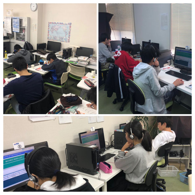 最初の頃は、休憩時間になっても、そのまま集中してパソコンを続けたりしていた生徒が多かったのですが、少しづつ慣れてきた感じがします。